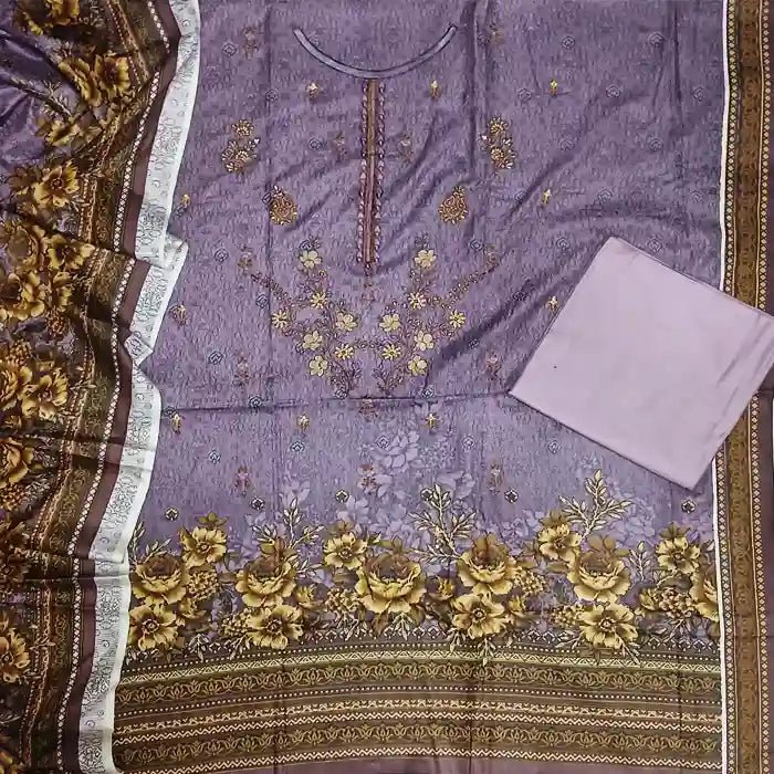 Dhanak Stuff (Winter)Fabric DhanakStyling Printed & Sequence EmbroideredProduct Category 3 Piece UnstitchedFront: Fully Printed & Sequence Embroidered | Back Digital PrintedWidth: 28" And Height: 40" (Fit in Every size) Sleeves: | EmbroideryDupatta: | PrintedTrouser: | Dyed Plan Trouser