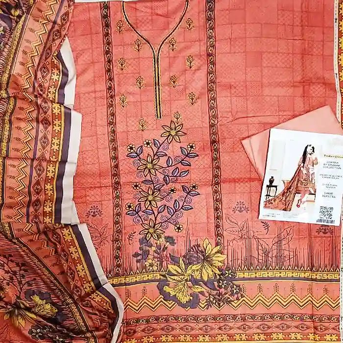 Dhanak Stuff (Winter)Fabric DhanakStyling Printed & Sequence EmbroideredProduct Category 3 Piece UnstitchedFront: Fully Printed & Sequence Embroidered | Back Digital PrintedWidth: 28" And Height: 40" (Fit in Every size) Sleeves: | EmbroideryDupatta: | PrintedTrouser: | Dyed Plan Trouser