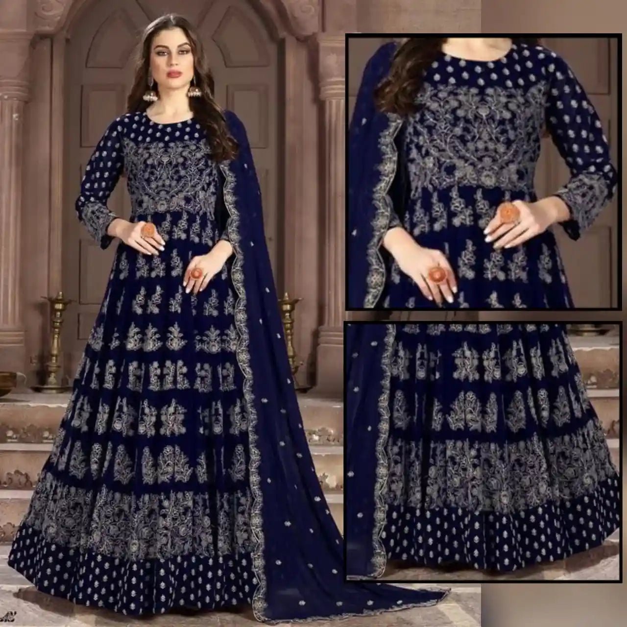Heavy Blue Embroidered Maxi - Varsa.pk