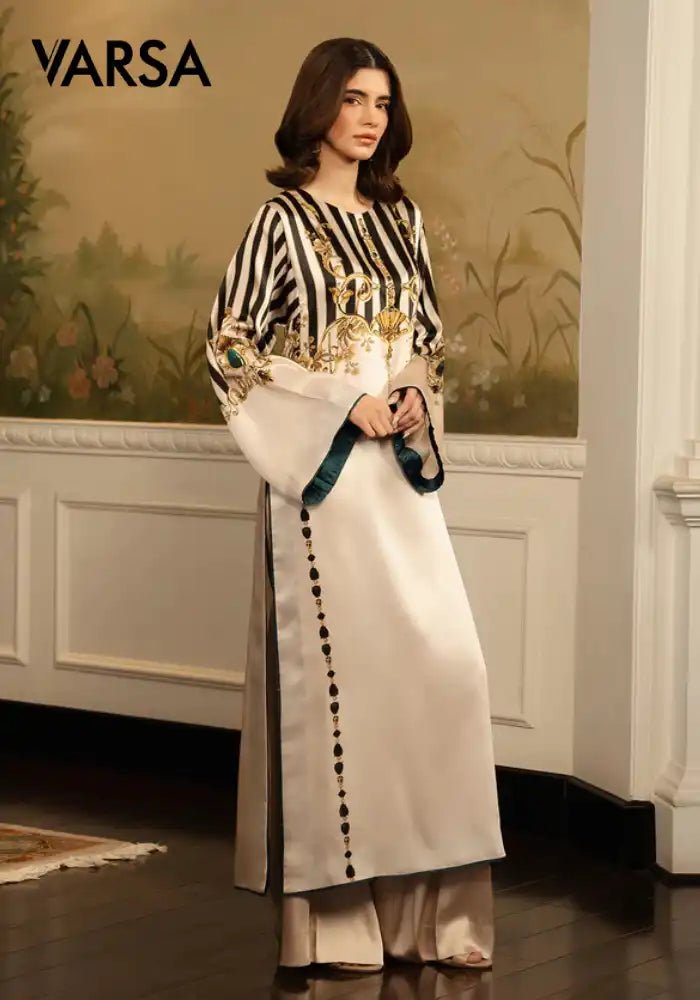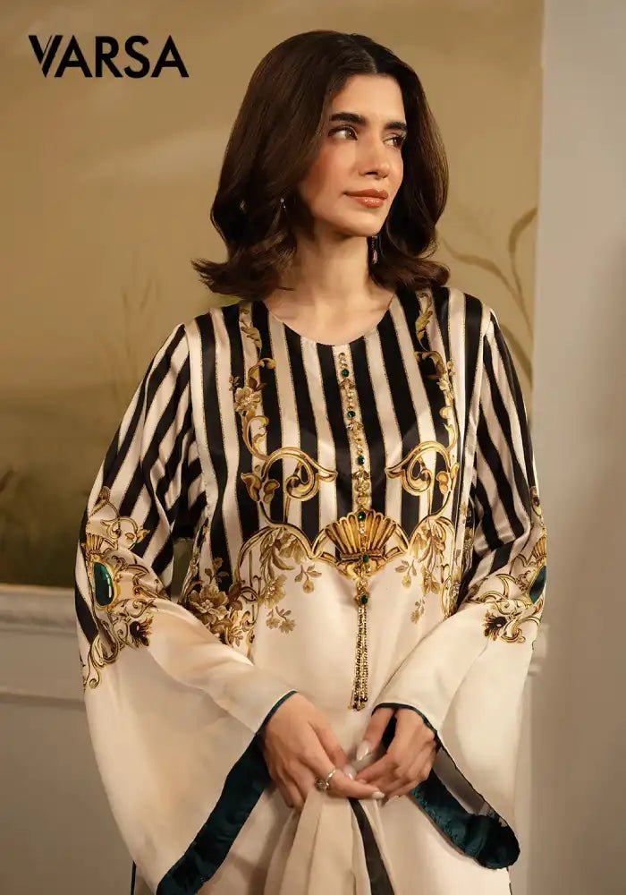 Black Strike Printed Silk 3 Pc Unstitched - White - Varsa.pk