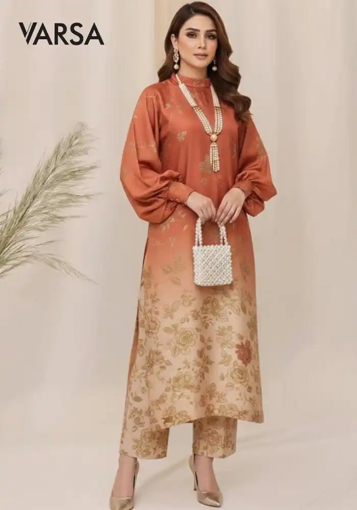 Silk Tye n Dye 3 Pc Unstitched Silk - Rust - Varsa.pk