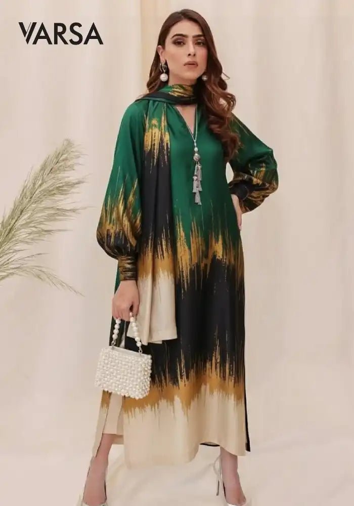 Silk Tye n Dye 3 Pc Unstitched Silk - Emrald Green - Varsa.pk
