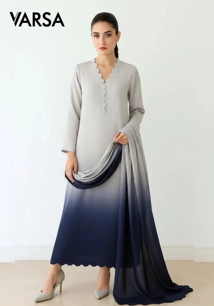 Silk Tye n Dye 3 Pc Unstitched Silk - Grey - Varsa.pk