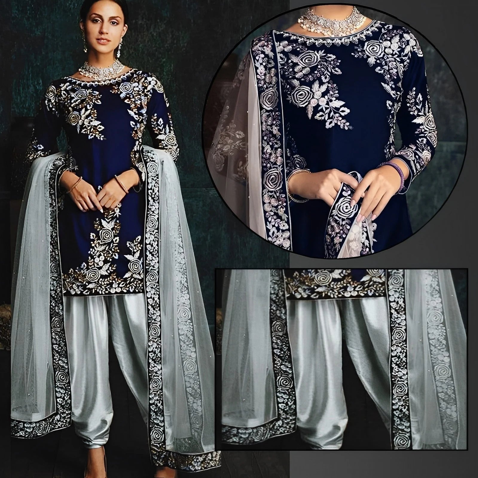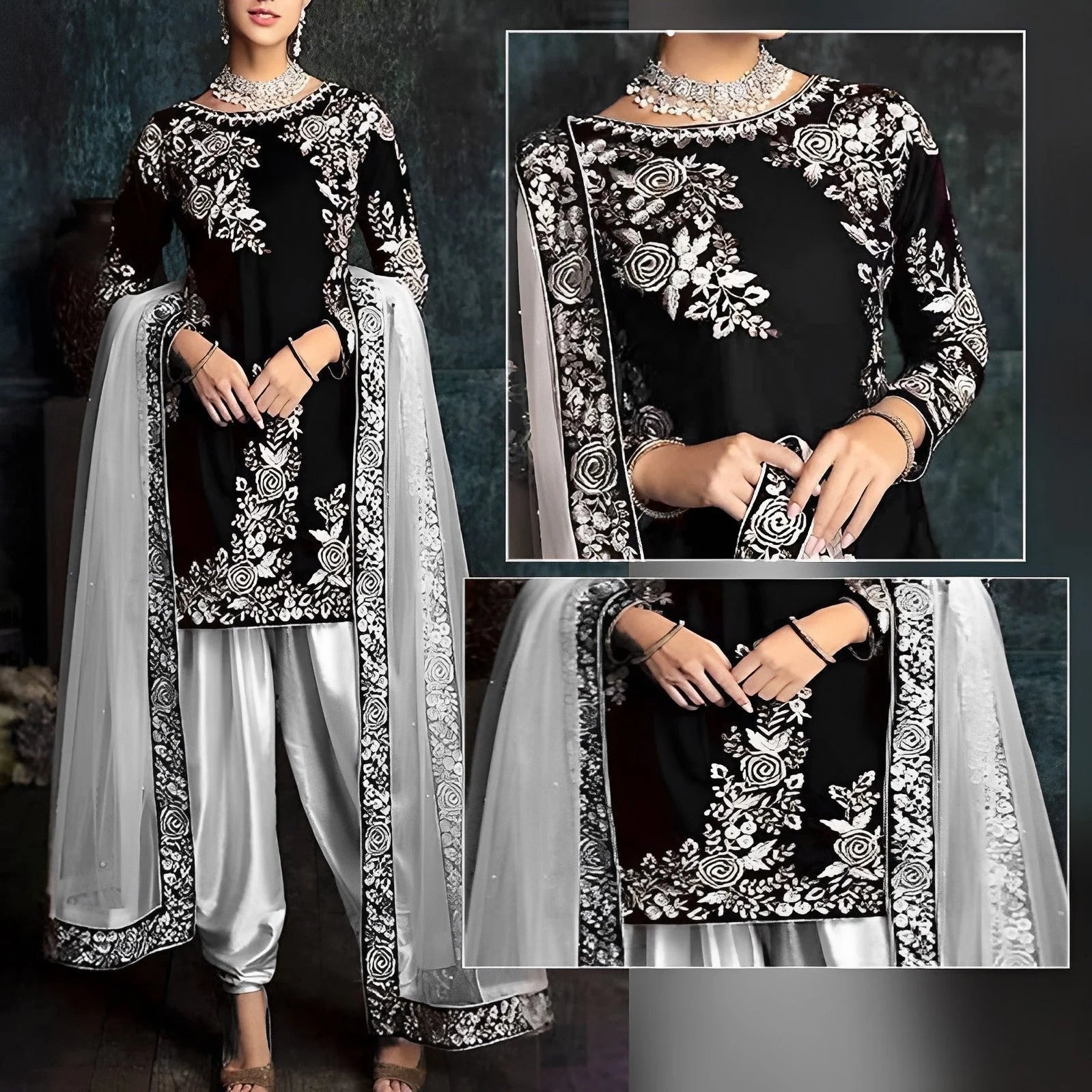 Fabric Slik & NetStyling Embroidered With Zari Product Category 3 Piece UnstitchedFront: Fully Embroidered | Back PlainWidth: 32" And Height: 35" (Fit in Every size)Sleeves: 0.75 Yard | EmbroideredDupatta: 2.5 Yard | EmbroideredTrouser: 2.5 Yard | Silk Stuff